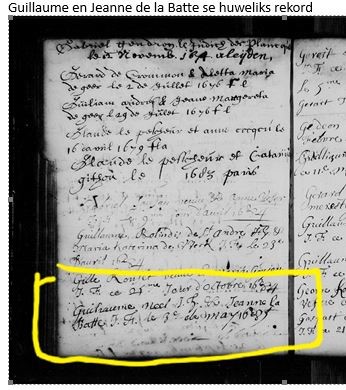Guillaume en Jeanne de la Batte se huweliks rekord