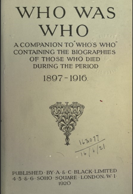 Written by Who was Who 1897-1916 on . Posted in PeopleOfOurTime.
