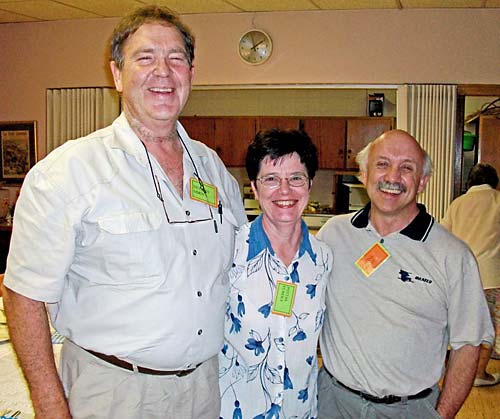 | From left to right: Simon du Plooy (Chairman of the Noordwes Branch, Potchefstroom), Eureka Pottas, and Johan Pottas (Chairman of the Free State Branch, Bloemfontein) during tea break. | |  |
