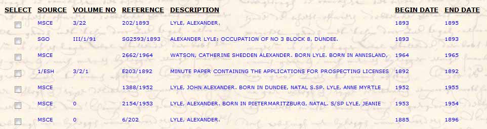 We only obtain copies of documents which can be found by using the South African Archives Service online index NAAIRS